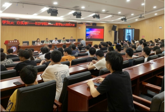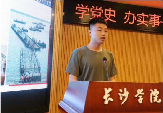 活动现场,来自该校机电工程学院的3名退伍学生李超、刘登科、谢超分别分享了他们的入伍经历。他们中1人通过“大学生士兵计划”考取了中南大学硕士研究生,1人考取了广东省连州市公安干警,1人已顺利就业。他们分享的军营生活热血、励志:流血流汗不流泪的集体拉练,扛得了机枪下得了厨房的丰富体验;学费补偿、考研专项计划、考公务员专项计划等多项优惠政策……通过身边退伍学生的分享,大家对应征入伍有了更多的了解,对绿色军营有了更热切的渴望。活动还邀请开福区区委常委、区人民武装部部长张贻龙上校作党史和国家安全讲座,帮助大家全面了解、正确认识中国共产党的历史,了解基本的国防理论和军事知识,树立居安思危的国防观念,激发大家爱军习武、献身国防的决心。