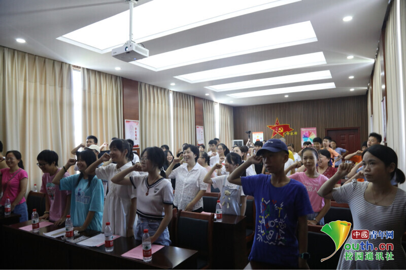 图为南岳迎宾社区集体进行禁毒宣誓(中国青年网通讯员张楚政摄)