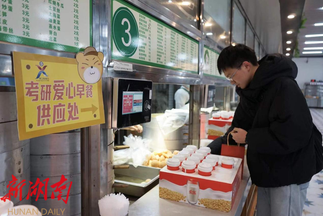 湖南日报·新湖南客户端12月23日讯(记者 张颐佳 通讯员 谭寅寅)“虽然只是一份早餐,但在我看来,这既是考研路上的小惊喜,同时也象征着最后的冲刺。非常感激学校,让我充分感受到了这个大家庭的温暖。”早晨,长沙学院18生工1班周翔接过学生资助管理中心伍老师送上的包子、鸡蛋、豆浆与橙子,激动地分享这句最喜欢的校园祝福语——“包”你上岸,考研“橙”功。
