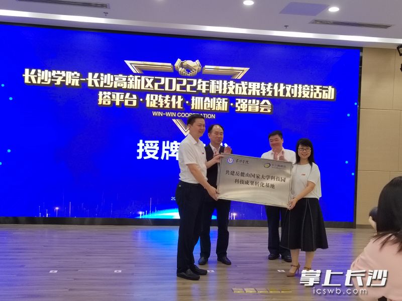 “长沙学院-长沙高新区共建岳麓山国家大学科技园科技成果转化基地”获授牌。均为长沙晚报全媒体记者 徐运源 摄