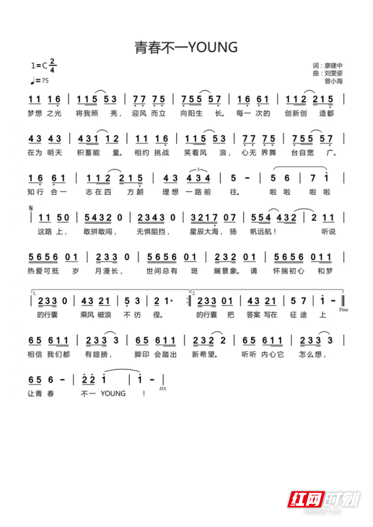 《青春不一YOUNG》由著名湖南青年词作家、中国音乐家协会会员、长沙市音乐家协会副主席,长沙学院校友廖建中填词,长沙学院音乐专业教师曾小海指导2019级学生刘雯姿作曲。三位“长大人”梦幻联动,共同创作了这首充满正能量、朗朗上口的会歌,献给第十届“挑战杯”,更献给所有为梦想迎风而立,向阳生长的挑战者们!