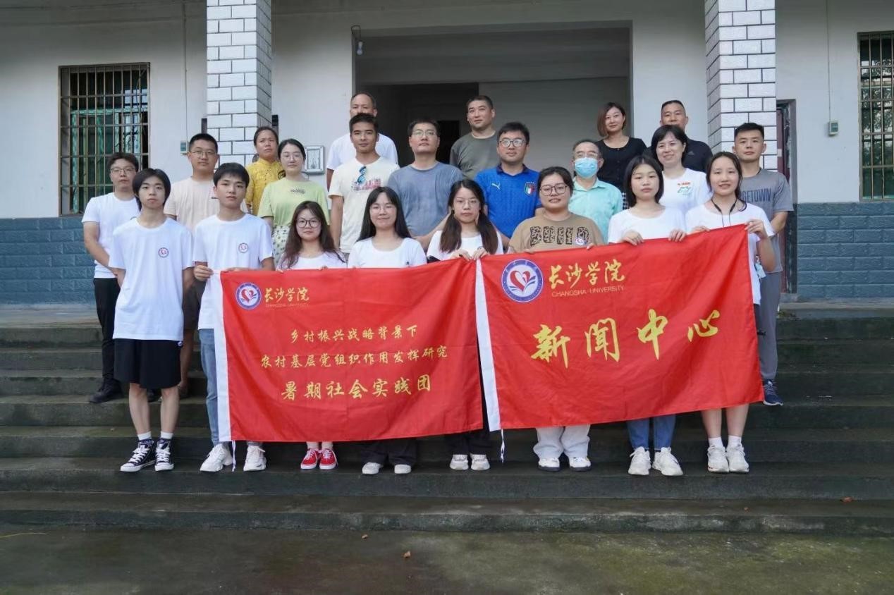 长沙学院新闻中心“三下乡”暑期实践调研团队与当地干部合影
