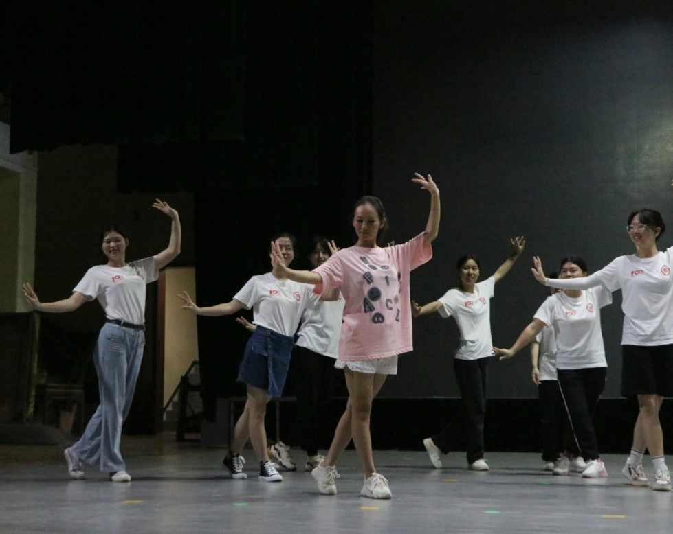 实践团成员跟随非遗传承人学习水袖动作