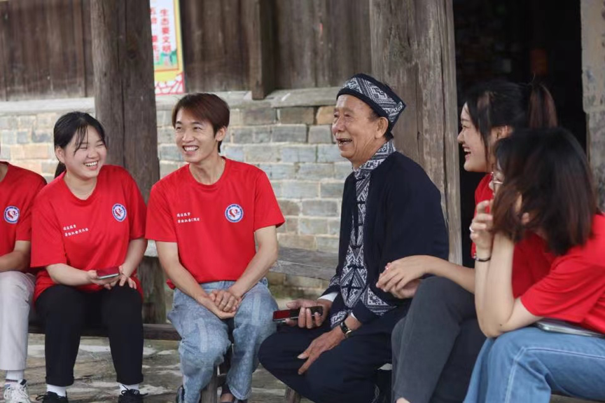 期间,实践团寻访岭南村侗族文化非遗传承人吴祥跃、龙登娥,见证到朴素的文化情怀。乡野之间,实践团队员们围坐一圈,聆听着湖南省第二批非物质文化遗产侗款非遗传承人吴祥跃老人的侗乡故事。“侗款目的在于村里人团结一心、规范习俗、和睦相处,通过教育让侗家伢子都能出去......”采访中,吴祥跃老人讲道。吴爷爷享有很高的威望,是当地的“款首”,几十年如一日,守护着侗文化的“古老约定”。而通道侗族自治县侗戏非遗传承人龙登娥,同吴老一般,守护着那古老质朴的优秀文化。“我唱侗戏40年了,武、旦等各种角色都参演过,侗琵琶等乐器都会,自己也学习二胡,也曾利用“抖音”等现今的信息传播平台,传播侗戏文化......唱侗戏是我人生中最大的一个爱好。”龙登娥老师动容地说道。