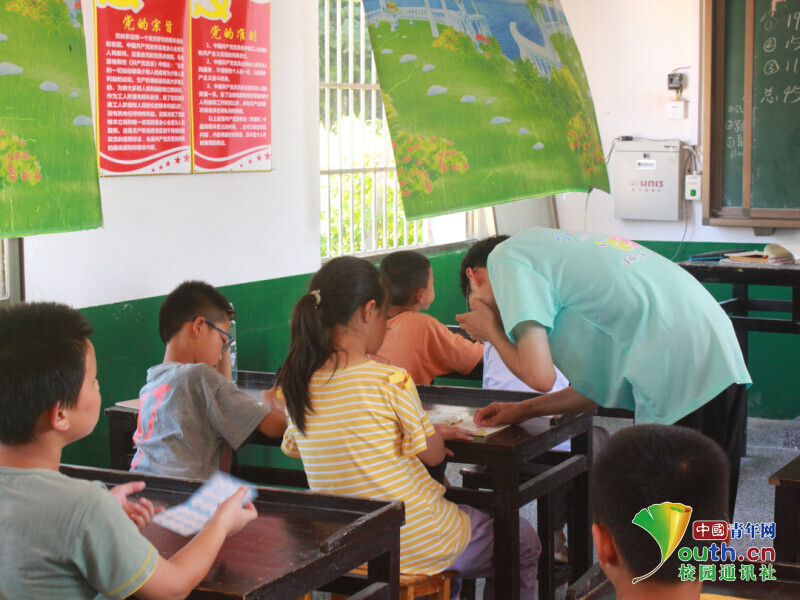 图为团队成员上课检查学生作业 中国青年网通讯员刘楠摄