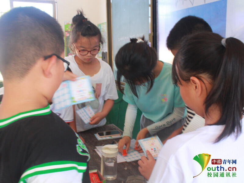 图为团队成员给学生奖励盖章 中国青年网通讯员刘楠摄