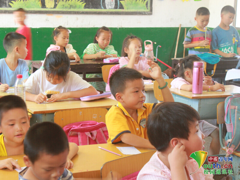 图为大湖学校学生上课举手回答问题 中国青年网通讯员刘楠摄