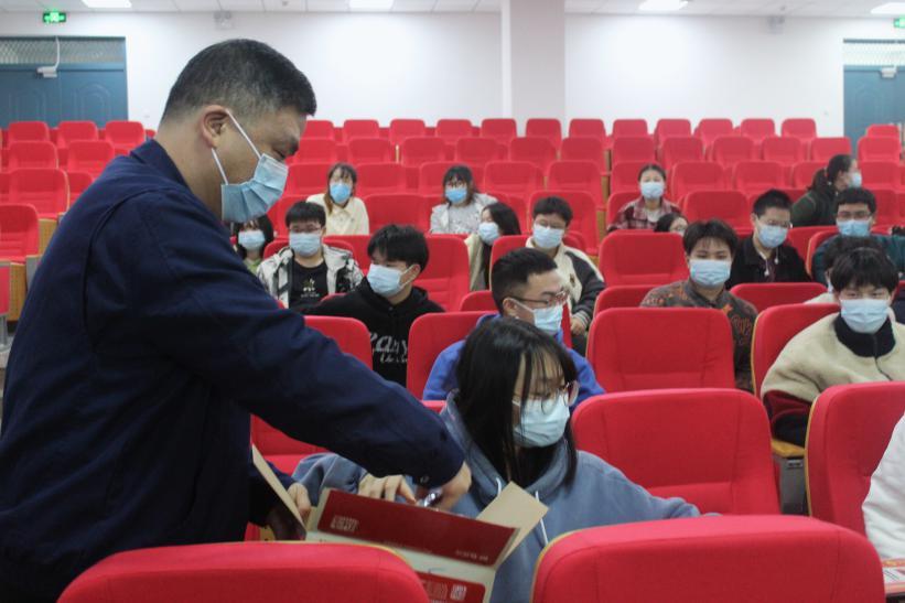材料与环境工程学院党总支书记肖杰为考研学生送“福袋”。