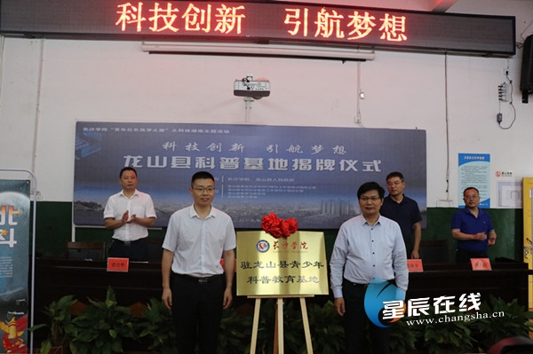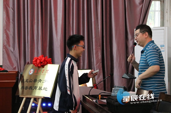 这支12人的博士团队包含了地理学、生物学、环境科学、化学、通信工程等学科和专业的多名教授及博士。在龙山二中,通信专家吴鹏就为同学们开展了一场题为“北斗卫星导航系统及其应用”的学术讲座,还演示了相关设备,受到同学们热捧,大家纷纷举手参与讲座互动。现场,刘沛林和龙山县委副书记陈忠耀共同为长沙学院驻龙山县青少年科普教育基地揭牌。“长沙学院将充分发挥高校的优质资源,有计划有组织地每年安排科普志愿者来龙山开展一些科普讲座活动,提高青少年的创新能力,把好事办好、实事办实。”刘沛林表示。