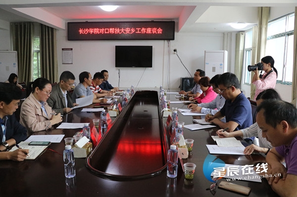 在大安乡召开的对口帮扶工作座谈会上,陈忠耀对长沙学院对口帮扶工作取得的成绩表示充分肯定和衷心感谢。刘沛林表示,长沙学院将一以贯之全力支持对口帮扶项目建设工作,确保思想不松、投入不少、力度不减,助力大安乡如期脱贫。