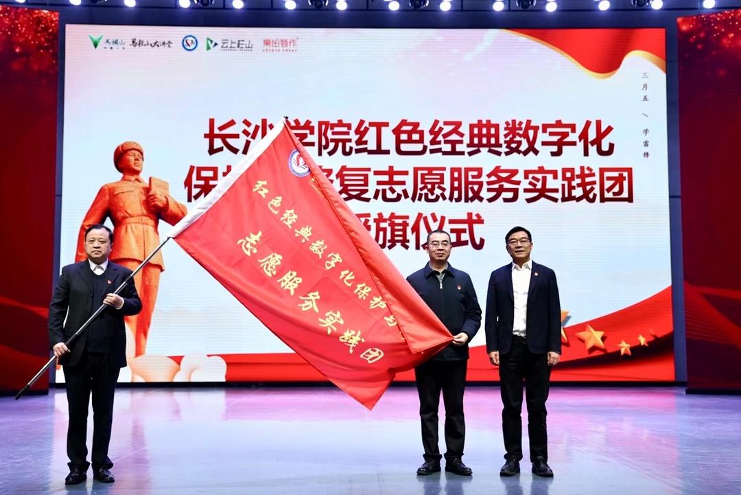 长沙学院艺术设计学院红色经典数字化保护与修复志愿服务团授旗现场