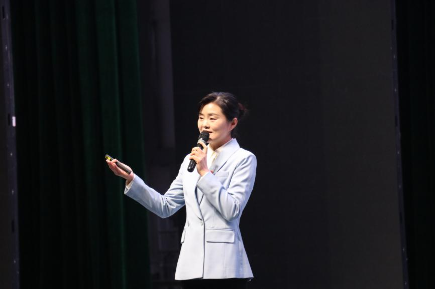 张颖深情讲述——“以青春之名 书时代答卷”。她以“青春是什么?”向师生发问,以“毛家三兄弟”“金属物理学家陈能宽”“以青春定格的雷锋”“95后全国人大代表小砌匠邹彬”四段感人肺腑的故事,从“青春因理想而崇高”“青春因奋斗而闪光”“青春因奉献而不凡”三个角度,引导广大青年师生努力成为有理想、敢担当、能吃苦、肯奋斗新时代好青年,让“青春”在全面建设社会主义现代化国家的火热实践中绽放绚丽之花。