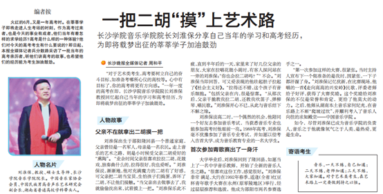 “对于艺术类考生,高考要树立自己的奋斗目标,如准备考哪所心仪的高校等。心中有目标了,你的高考将更有方向感。”一年一度的高考在即,长沙学院音乐学院院长刘淮保教授回忆起自己当年的学习和高考经历,为即将载梦出征的莘莘学子加油鼓劲。