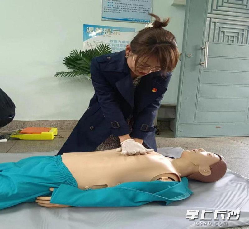 长沙晚报掌上长沙3月24日讯(通讯员 闫娜娜 全媒体记者 刘俊)“心肺复苏的操作,首先要进行环境安全评估、做好个人防护,其次要迅速判断有无反应和呼吸,快速呼救……”近日,长沙市红十字会在长沙学院开展了以“人人学急救,‘救’在校园”为主题的应急救护CPR(心肺复苏术)+AED(自动除颤装置)培训。