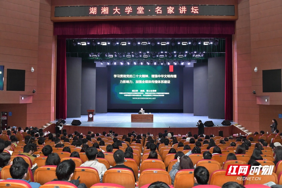 3月29日,由湖南省委宣传部、湖南省社科联主办,长沙学院承办的2023年第1期湖湘大学堂在长沙学院学生活动中心举行。中国社会科学院新闻与传播研究所所长、中国社会科学院大学新闻传播学院院长胡正荣教授以《学习贯彻党的二十大精神——增强中华文明传播力影响力,加强全媒体传播体系建设》为题作主旨演讲。湖南省社科联党组成员、副主席丁宇主持活动。