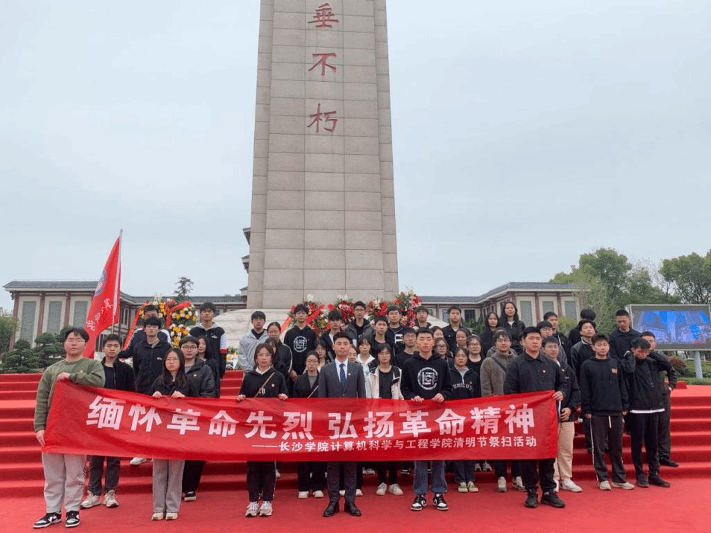 为缅怀革命先烈,弘扬革命精神,传承红色基因,激扬青春力量,长沙学院计算机科学与工程学院一如往昔,在4月5日清明节这天,组织师生开展了线上“慎终追远,祭奠英烈”和现场祭奠烈士的清明祭扫暨爱国主义教育活动。线下活动由学院团总支书记胡立带队,学生党团干部代表等50余人前往湖南革命陵园进行了现场祭扫。