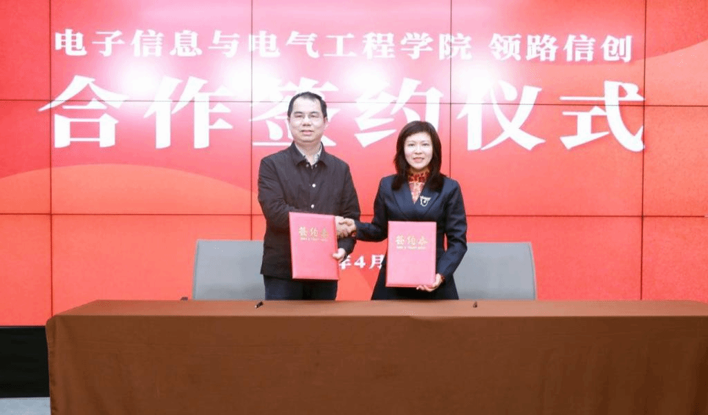 会上长沙学院电子信息与电气工程学院和领路信创签订校企合作协议,同时也进行了授牌仪式。最后就学院与基地如何开展信创人才协同培养进行了深入细致的探讨,包括从信创企业用人需求出发,根据企业需求协同研发信息技术创新应用型实训课程,为信创企业输送能力对口,岗位对口的专业人才。