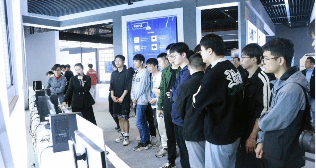 参观交流活动第二站,师生一行抵达国家新一代自主安全计算系统产业集群人才基地,对基地教学配套环境进行参观了解。领路集团董事长、长沙领路信创科技有限公司董事长、人才基地负责人刘耿女士接待长大师生,并对领路集团各业务情况及人才基地情况做了详细介绍。