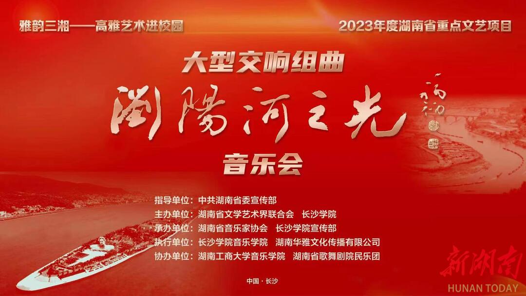 湖南日报·新湖南客户端4月23日讯(通讯员 吴静 记者 陈普庄)由湖南省文联推出的大型交响组曲《浏阳河之光》于2023年2月10日在湖南大剧院首演大获成功,得到各界好评,被列入湖南省2023年重点文艺项目。根据领导和专家意见,省文联组织力量对作品进行了认真打磨和提升,调整完善后的该部交响作品被省委宣传部纳入“雅韵三湘——高雅艺术进校园”巡演计划。4月26日晚,将在长沙学院学生活动中心剧场开启巡演第一场。