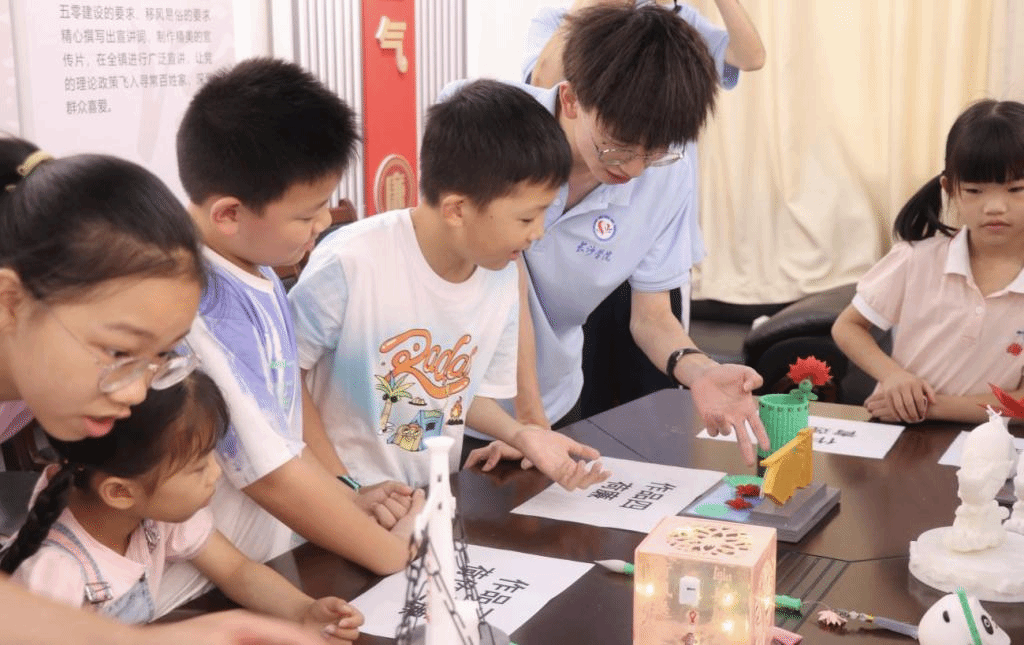 在长沙县果园镇新明村的廉政文化阵地室里,《廉洁的天平》《荷廉》《清廉号》等一件件作品整齐摆放,这些作品都是利用3D打印、激光切割、激光雕刻等工艺制作而成。“当前,网络信息纷繁复杂,孩子们的价值观念极易受影响,我们希望灵活地运用各种方式,潜移默化地对孩子们进行清廉教育。”机电工程学院实践团成员江志鹏和同学们向小朋友们一一介绍了每件作品的制作过程和设计理念,让“清廉”二字通过3D模型具体化、形象化。“小朋友们听得很认真,看得也很入神,我们讲得更有劲,学以致用的感觉真好。”