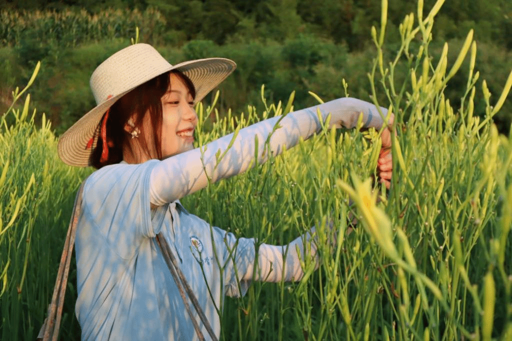 (“忘忧黄花,与你祁行”实践团采摘黄花菜作为实验样本)