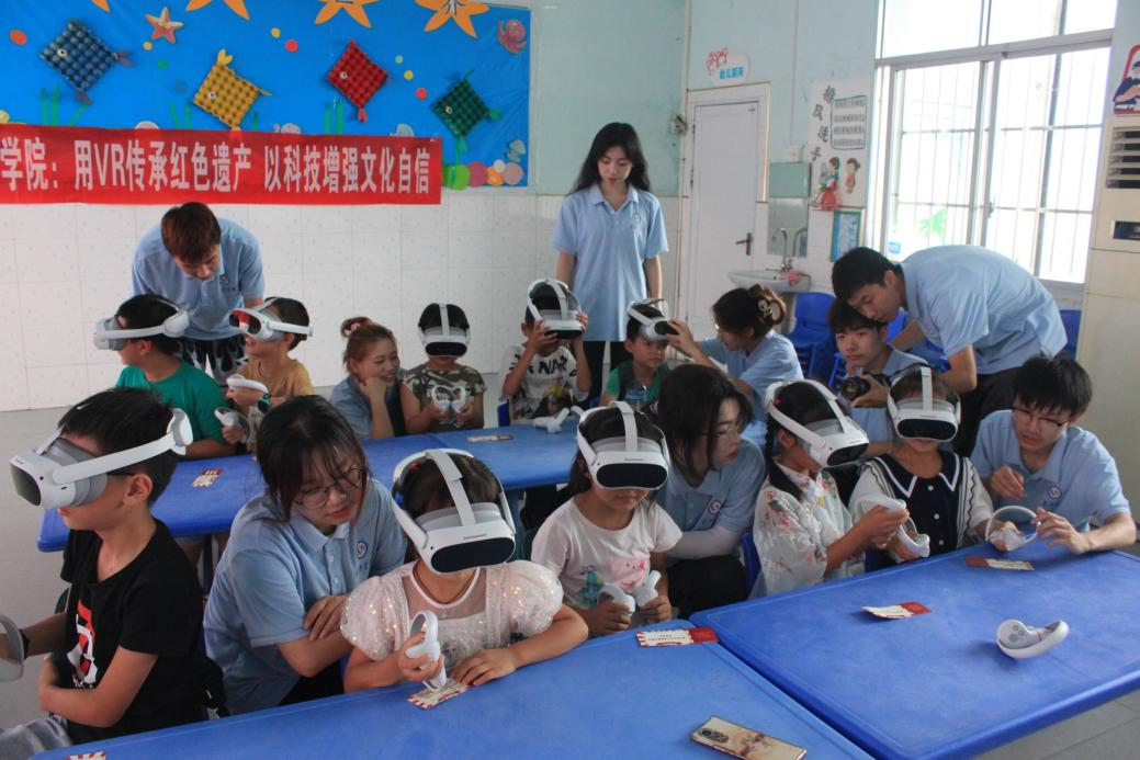 “哇!原来雷锋叔叔的家是这个样子的!”长沙学院艺术设计学院“三下乡”暑期社会实践团队在怀化市溆浦县卢峰镇开展了VR雷锋数字展馆体验活动,一位来自该镇红远村的小朋友开心地惊呼,逗笑了全场所有人。该实践团队在卢峰镇马田坪村村部、红远村红星娃娃乐幼儿园、高低村村部开展了三场别开生面的红色主题教育活动,吸引了当地中小幼学生和村民近300人。大朋友和小朋友们分批在团队志愿者的指导下,戴上VR体验设备,参观了雷锋数字展馆,近距离、沉浸式学习了解雷锋同志生平事迹。