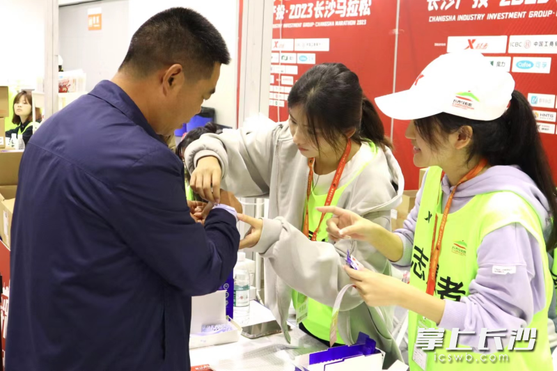 长沙晚报掌上长沙10月30日讯(全媒体记者 刘俊 通讯员 梁莉 陈婧琳 吴柯锐)“请参加长沙马拉松的选手朋友排队测试您的芯片……”在29日开跑的长沙产投·2023长沙马拉松上,湖南国际会展中心(芒果馆)内外都是长沙学院青年志愿者的身影。据了解,该校组织青年志愿者近1400人次参与到长马赛事志愿服务中,为2.6万余名参赛选手提供贴心、细心、暖心的服务。