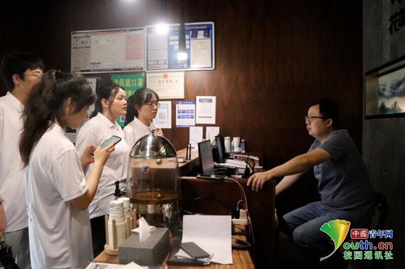 图为采访民宿老板。中国青年网通讯员 周影锋 供图