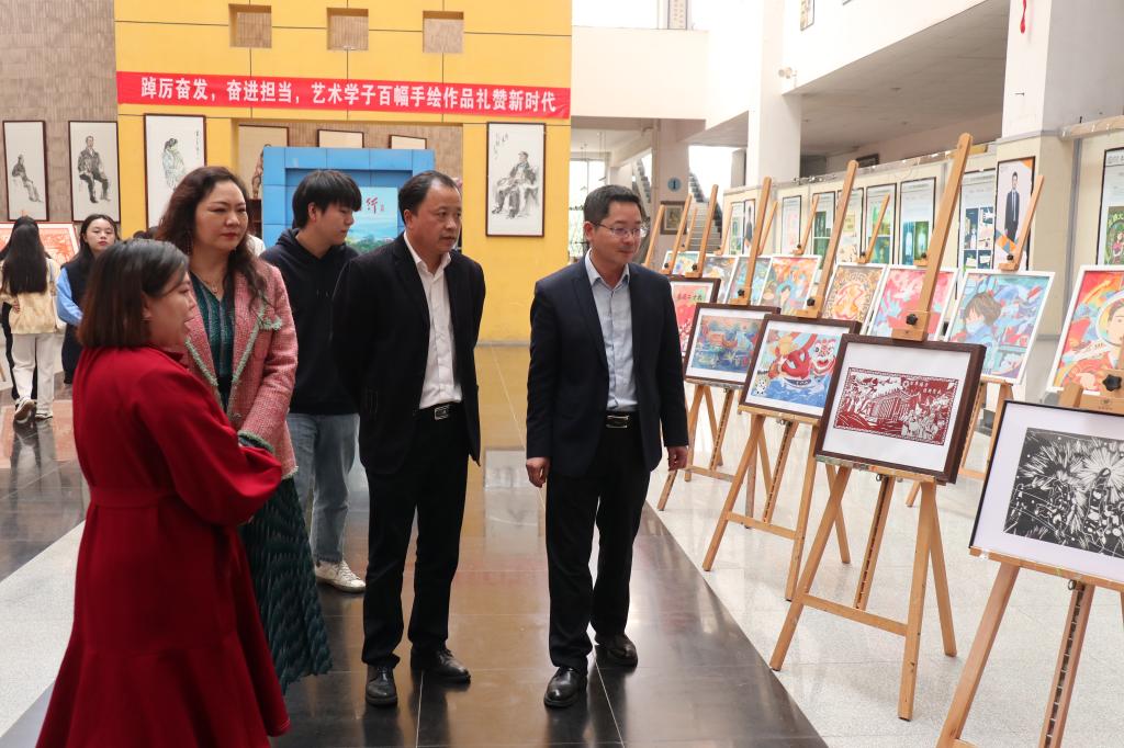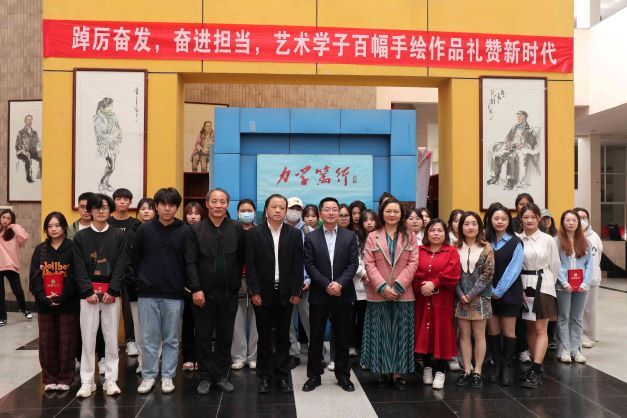 11月1日中午,一场以“踔厉奋发 奋进担当 长大学子百幅作品礼赞新时代”为主题的原创艺术作品展在长沙学院艺术设计学院丹青楼一楼大厅举行。长沙学院党委学生工作部部长徐远超,艺术设计学院党总支书记舒欣、院长胡友慧、党总支副书记黄慧瑾和师生代表出席了本次作品展并为获奖学生颁奖。