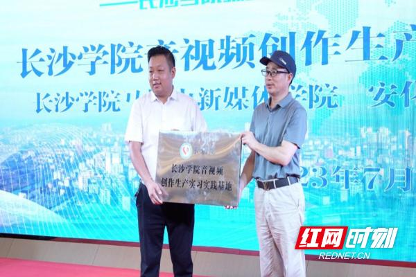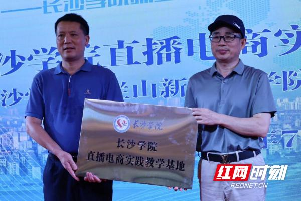 启动仪式上,长沙学院与安化县梅城镇人民政府、安化一中分别签订了校地战略合作协议、共建实习基地协议,进行了“长沙学院直播电商实践教学基地”“长沙学院音视频创作生产实习实践基地”“长沙学院融媒体推广国家通用语言文字基地”的授牌,并由马栏山新媒体学院副院长荣斌率主播美丽、导演马犇、总监王雅兰、总监曾杞林等特聘实践导师以及长沙学院“厚朴”暑期实践团大学生主播们,以现场直播带货安化梅城土特产的方式上了第一堂培训示范课。