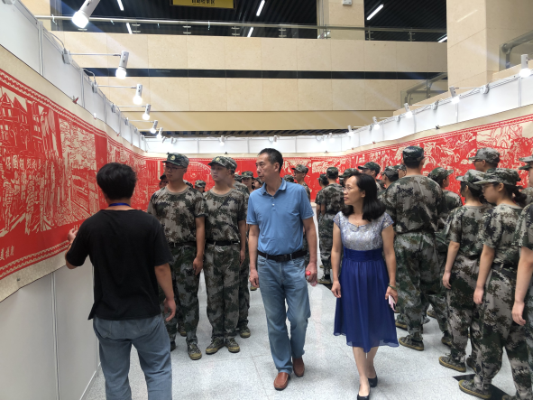 入校伊始,刚报到两天的长沙学院4290名大一新生就在校关工委老同志和军训教官的陪同引导下,有序参观了设在学校图书馆的“百年党史 百米剪纸”长卷展览,开启了进入大学以来的党史教育第一课。该展览为学校关工委、武装部、艺术设计学院主办,校图书馆、二级学院关工委协办,旨在歌颂共产党,赞美新时代,激起大学生们爱党爱国热情。新生们一边为精湛的剪纸艺术而惊叹不已,一边为百年党史中的光辉历程和奋斗足迹而赞叹不已。“我们的党太伟大了,作为一名新时代的大学生,我们必须牢记和传承好这些历史和精神。”在剪纸展览前,许多大一新生纷纷表达自己的心声。