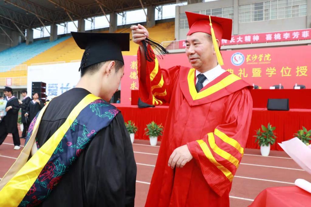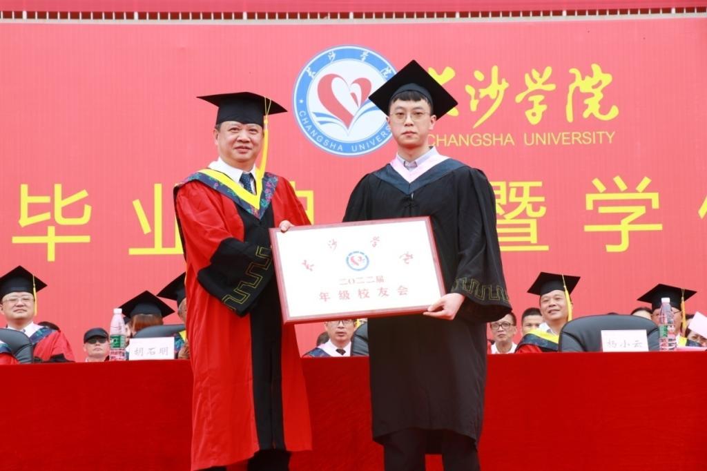 党委委员、副校长祝磊宣读了《长沙学院学位评定委员会关于授予艾虎等4340位学生学士学位的决定》《关于表彰湖南省普通高等学校2022届优秀毕业生和创新创业优秀毕业生的通报》。副校长陈世平宣读了《关于聘任梁国庆等225名毕业生为长沙学院2022届年级校友会理事会成员的决定》,党委副书记汤文胜为2022届年级校友会授牌。