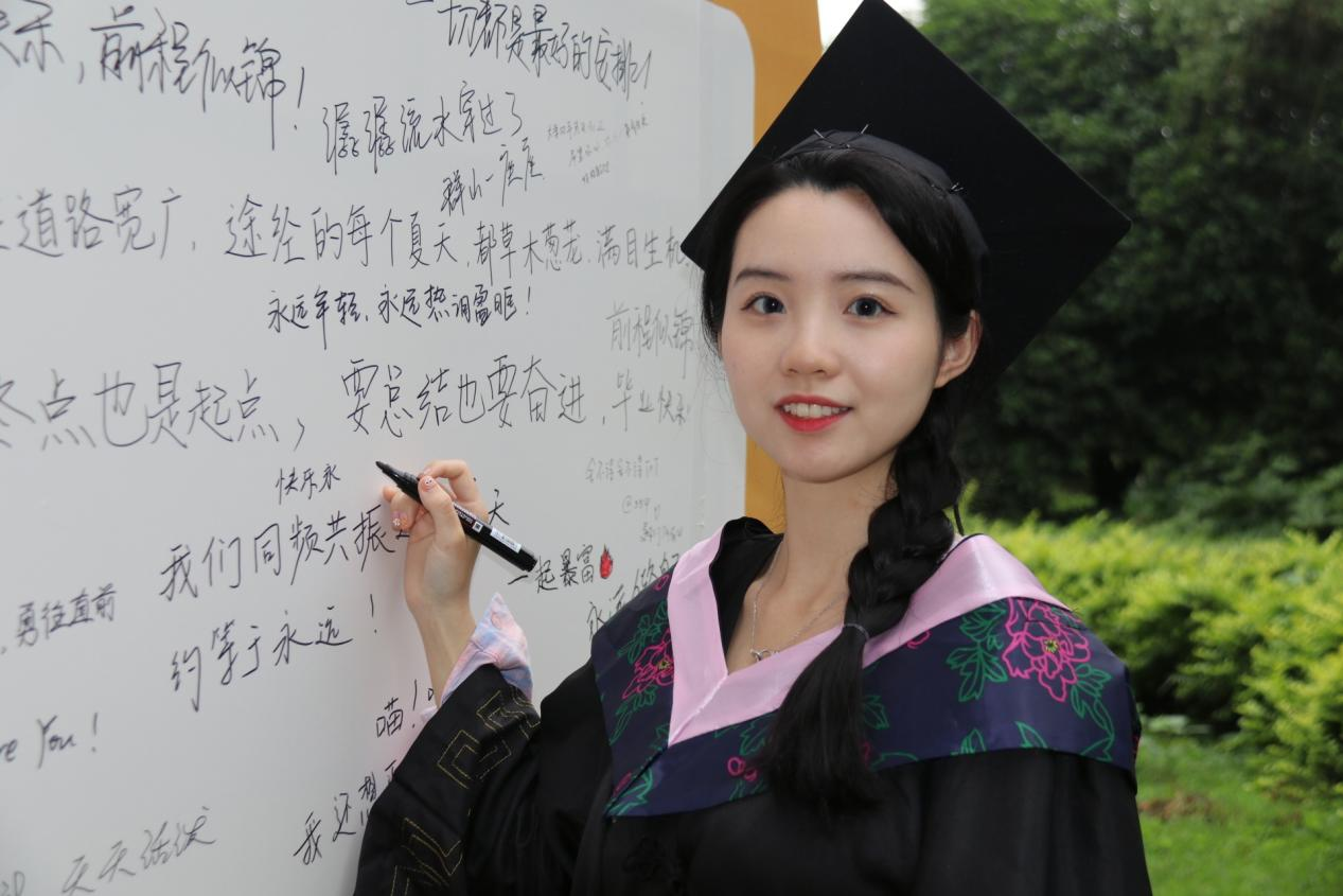 除了朝夕相处的老师,学校学生工作处宿舍管理中心、学生食堂等也纷纷开启宠爱模式,学校融媒体中心更是打造了精美的毕业季文创纪念品,布置了承载着祝福和嘱托的校园摄影打卡点和特色路牌等,营造了温馨浪漫的毕业氛围。