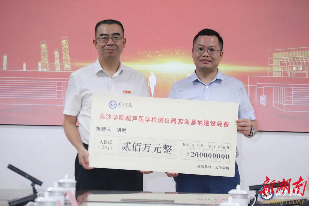 胡胜表示,毕业多年始终心系母校,时刻关心和支持母校发展,此次捐赠旨在回报家乡、回报母校,充分发挥资助育人的重要作用,激励青年学子树立远大理想、刻苦勤奋学习。作为校友,将继续在“校友回湘”工作中展现新作为、作出新贡献,促进校企产、学、研、用深度融合,以实际行动助力母校高质量内涵式发展。