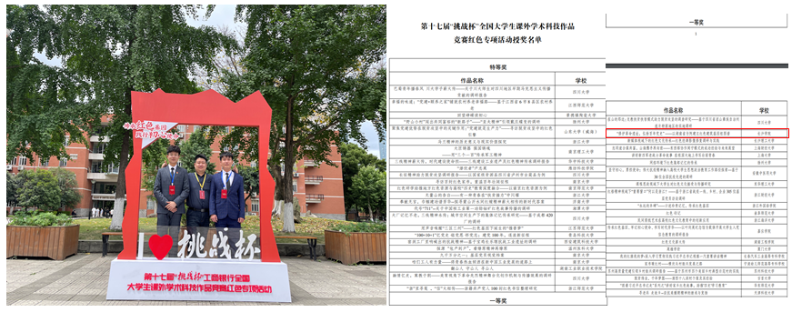 获第十七届“挑战杯”全国大学生课外学术科技作品竞赛红色专项一等奖
