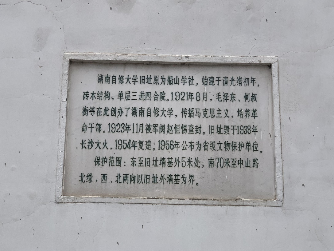 Nowadays, the Changsha Institute of Cultural Relics and Archaeology has been set up here. Hunan Self-Study College is selected as the Key Cultural Relics Site under Provincial Protection as well as the Patriotism Education Demonstration Base in Hunan, in which a succession of activities are carried out to learn the history of the CPC and inherit the traditional virtues of the CPC in order to build a better Changsha by taking advantage of the Hunan Self-Study College.