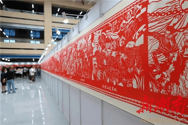 (百米剪纸长卷共分为“开天辟地”“改天换地”“翻天覆地”“惊天动地”四个篇章)