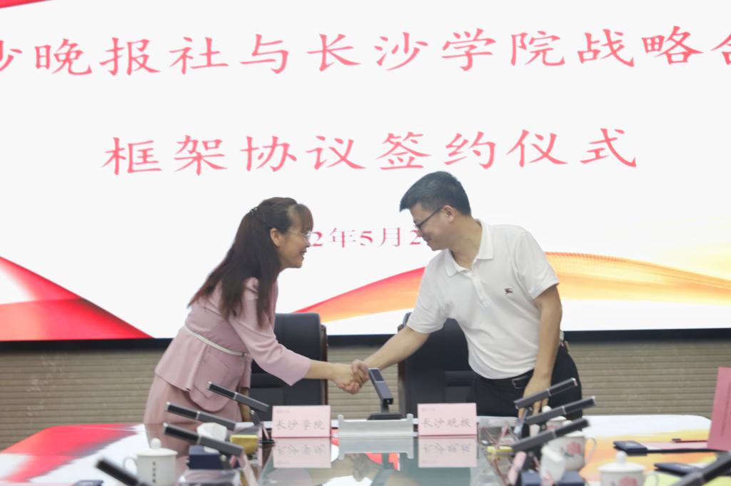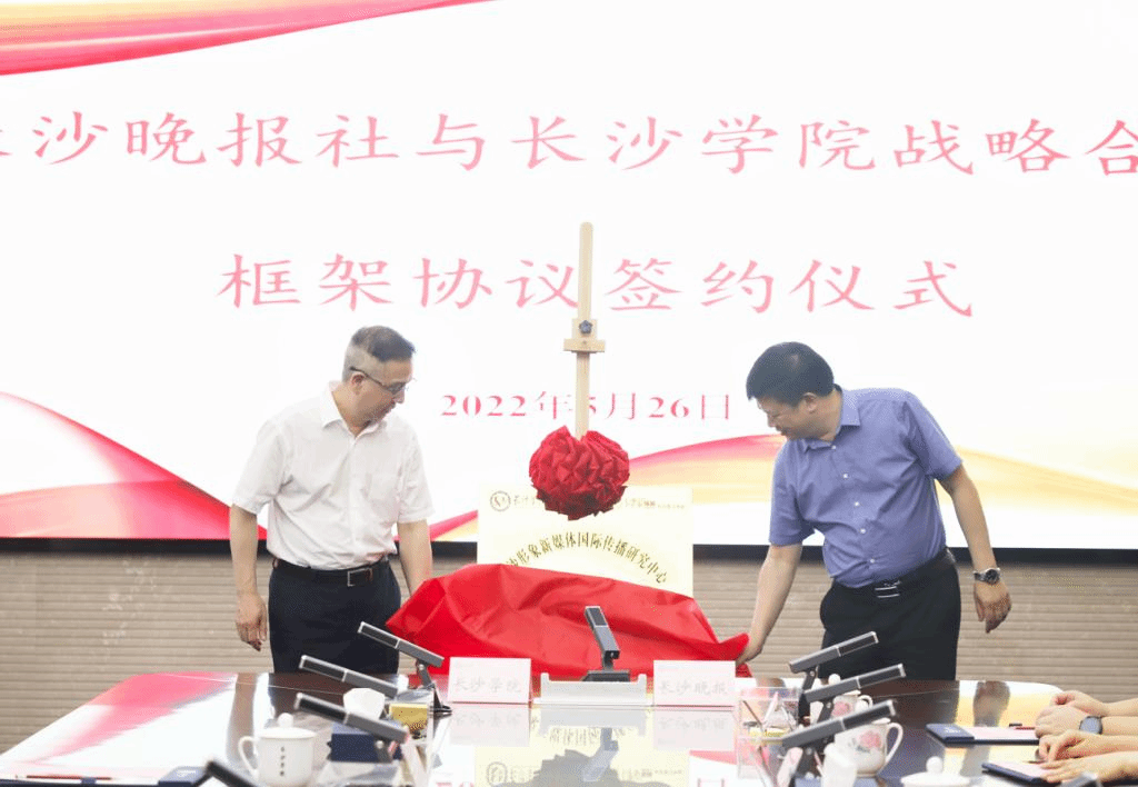 为共同推进长沙形象的国际传播,5月26日,长沙学院与长沙晚报社(集团公司)举行共建实践教学基地与研究中心仪式。双方将通过共建“长沙形象新媒体国际传播研究中心”“视频文创语言服务研究中心”“雷锋精神国际传播实践基地”,丰富长沙外宣的新窗口、新平台。