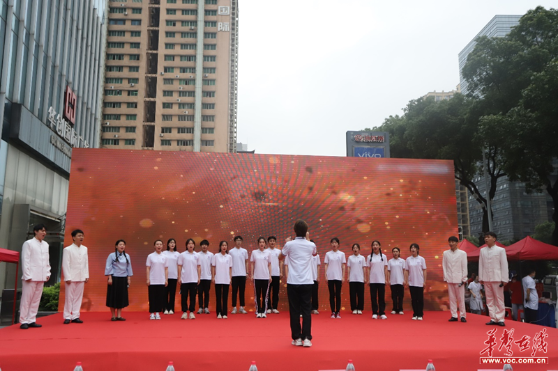 活动现场,长沙学院音乐学院“梦想之家”社区音乐教室美育公益服务团队20余名志愿者为群众们带来了激情豪迈的配乐诗朗诵、大合唱等精彩纷呈的节目,以此展现文化血脉、奋斗精神的代代传承,尽显高校青年学子们青春向上的积极风貌,受到现场观众们的一致好评。