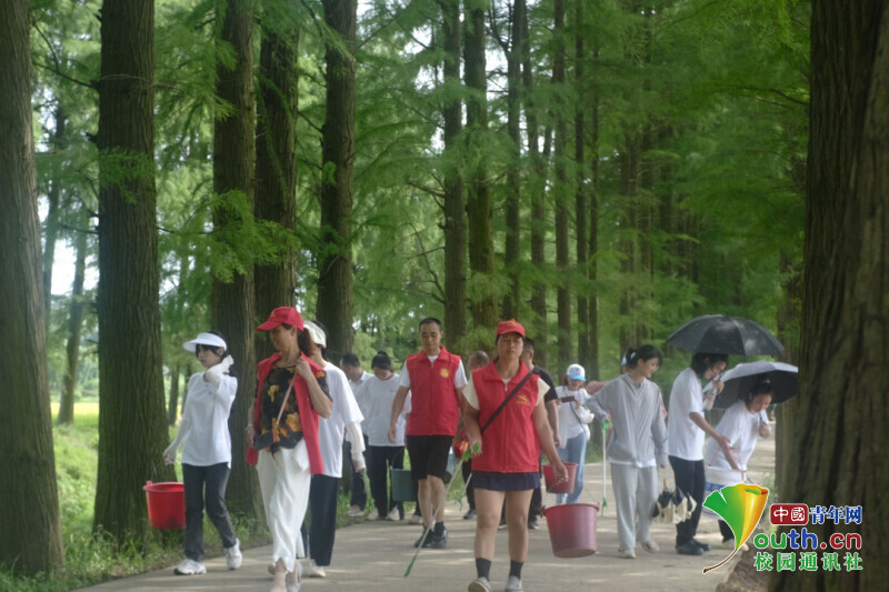 图为实践团跟随共青团祁东县委员会、祁东青年志愿者协会,前往彭家湾村开展“争当河小青,助力河长制”巡河护河志愿服务活动,成员们清理了沿路的垃圾,从小事做起,为城市的文明建设出力。中国青年网通讯员 陈鑫 摄