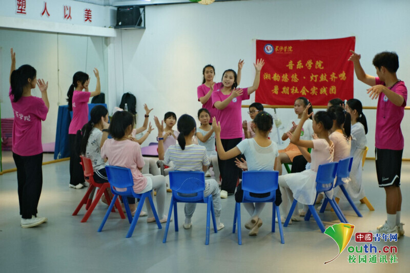 7月3日长沙学院音乐学院“湘韵悠悠,灯鼓齐鸣”社会实践团队走进“曲艺之乡”祁东,对祁东县非遗文化“祁剧”、“渔鼓”、“三官骨牌灯”进行深入调研,助力当地非遗文化宣传,扩大非遗文化影响力,为乡村振兴战略的实施提供文化支撑。此次下乡实践活动中,实践团开展两场文艺下乡惠民演出以及多场“非遗文化进课堂”美育公共课,课堂集听、说、舞、唱于一体,以激发学生兴趣为目标,强化体验感、视听感,以此加深受众对传统文化的理解,让非遗文化融入可见、可亲、可参与的现实生活。另外,团队还走进太和堂镇中国红军著名将领、革命烈士王如痴故居,追寻伟人足迹,传承红色基因。青春正当时,乡村振兴是新时代大学生们展示所学、发挥聪明才智的热土和舞台,“湘韵悠悠 灯鼓齐鸣”暑期社会实践团聚焦乡村振兴发展,有效激活优秀传统文化,助推文化产业赋能乡村振兴。此次实践活动旨在有效丰富乡村文化业态,保护乡村人文资源和自然资源,让文化产业带动乡村经济社会发展的作用更加显著,让青年学生在实践中淬炼成长!