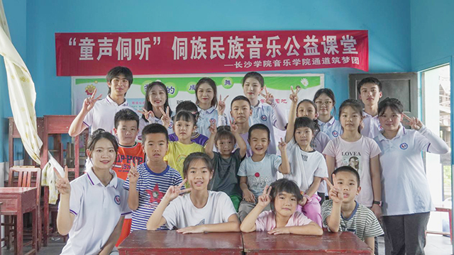 2022年7月3日至7月10日,由长沙学院音乐学院15名师生组成的通道筑梦暑期社会实践团坚守五年之旅赴通道侗族自治县支教“筑梦”。该团队携手当地牵手公益组织,在岭南村、芋头村开展音乐公益支教,助推民族音乐文化普育传承及少数民族地区乡村文化振兴。