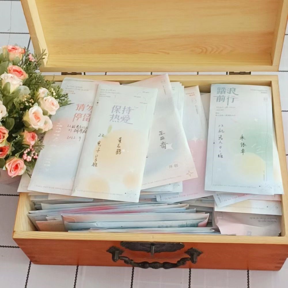 近日,长沙学院电信学院开启“时光邮局”活动。师生亲切互动,带着对理想的思索,写出对未来的展望,与梦想和希望同行,寄语青春。该学院正在军训的2022级435名新生衣着迷彩,郑重地写下承载着梦想和希望的信件,“邮寄”给四年后的自己。