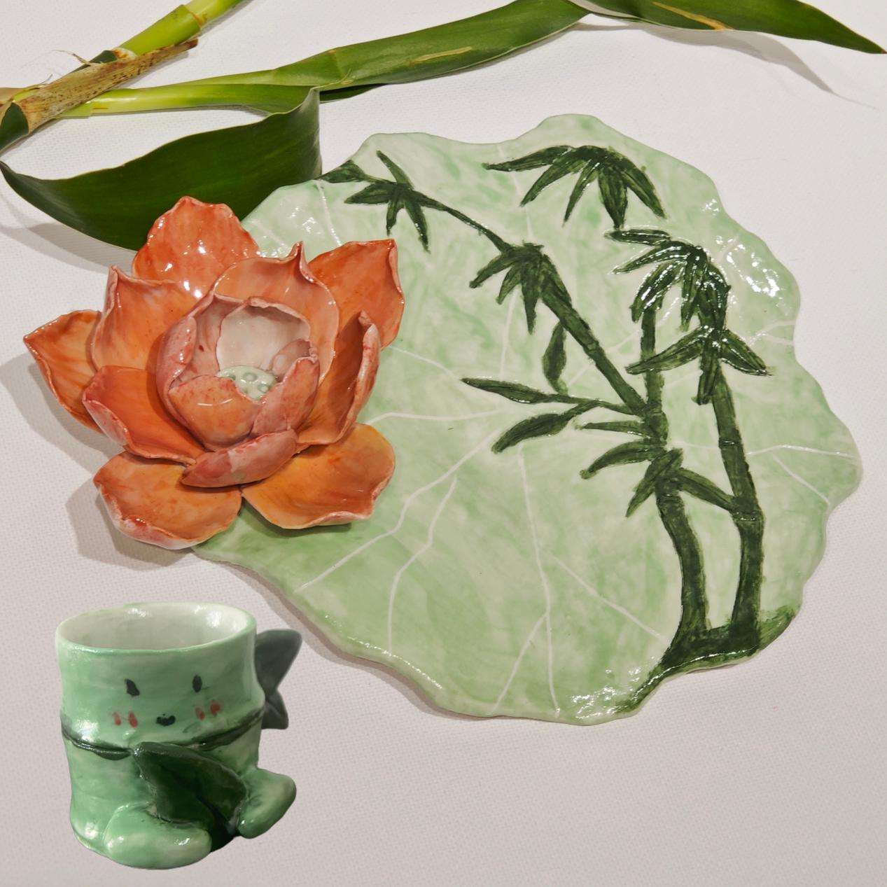 (长沙学院材料学院学生原创陶瓷作品《墨竹濯清莲》)