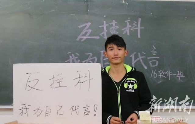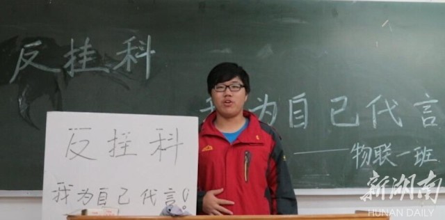 12月7日,长沙学院数学与计算机科学系学生在《说给未来的自己》活动上大胆承诺:如果我挂科了,我将怎么办?为了增强挂科的负面影响效力,用趣味性带动学生的学习积极性,推动个人的学习奋进和学习的集体约束力。当天,长沙学院数计系学生会举办了“反挂科,我为自己代言——说给未来的自己”活动。2016级472名同学采取随机抽取趣味惩罚的形式,当着全班同学的面大声念出抽到的惩罚。36条惩罚的出发点和落脚点是用简单、幽默、可行的“糗事”激发学习的动力,增加学习的乐趣,让学习成为一件快乐的事情。苏霖 摄