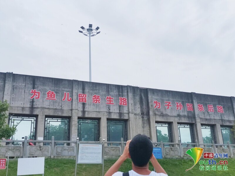 图为暑假社会实践团队拍摄陶公庙广场的防洪墙。中国青年网通讯员 黄佳璇 摄