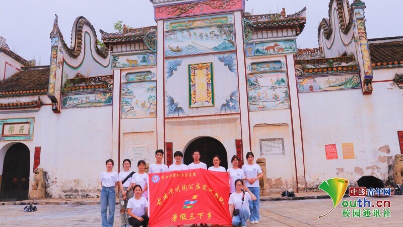 图为实践团成员在活动结束时在陶公庙门前合影留念。中国青年网通讯员 李家琪 摄