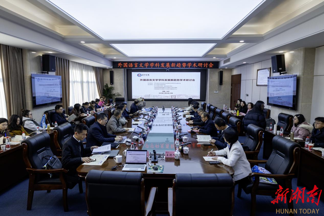 新湖南客户端12月30日讯(通讯员 尹铂淳 摄影 牟胜硕)近日,外国语言文学学科发展新趋势学术研讨会在长沙学院举行,来自复旦大学、华南理工大学、湖南大学、广西大学、湘潭大学、长沙理工大学、湖南人民出版社、湖南云端律师事务所、长沙学院等单位的40余位专家学者参会,共同探索外语、法学与区域国别学融合发展新路径。
