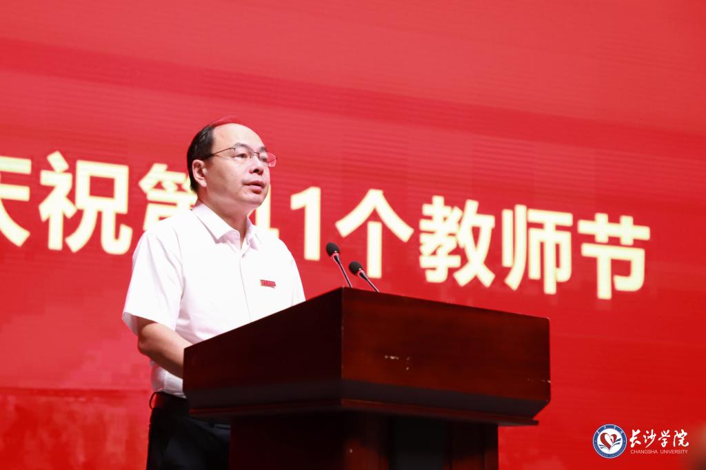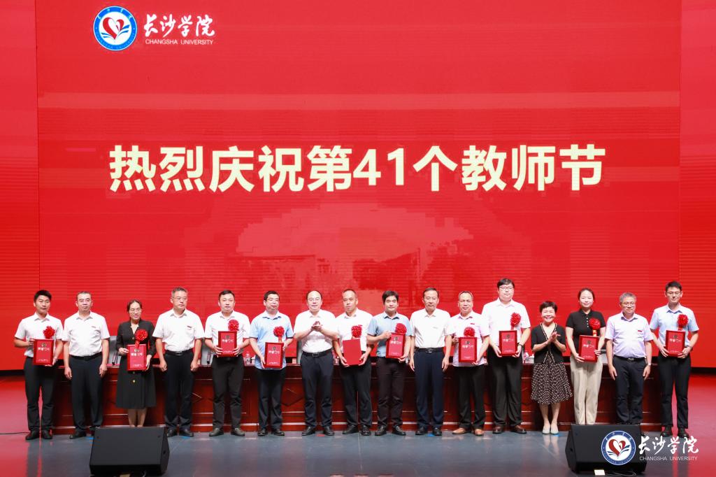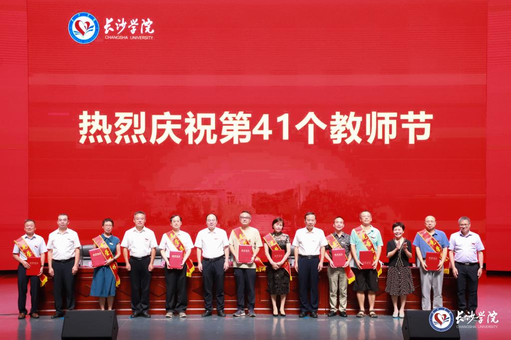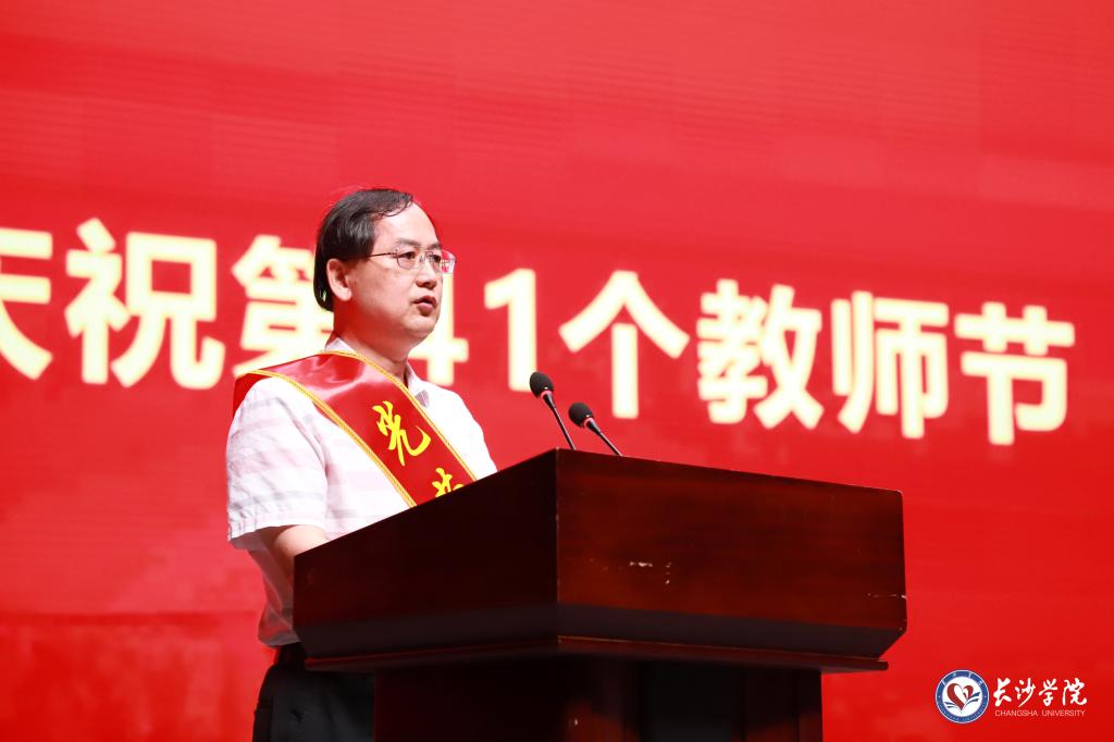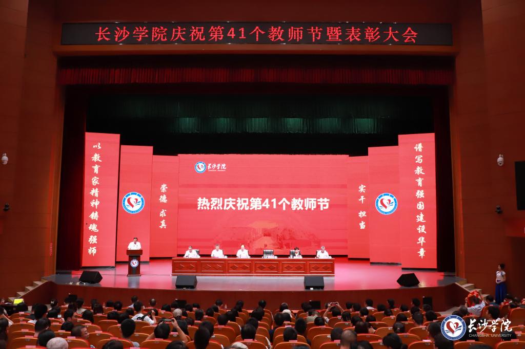 9月10日下午,我校在学生活动中心举行“以教育家精神铸魂强师,谱写教育强国建设华章”庆祝第41个教师节暨表彰大会。党委书记杨小云出席大会并讲话,校长陈赤平主持大会,全体校领导,全体科级以上干部,2025年度师德标兵、2024-2025学年获表彰奖励教师、荣休教师代表、新进教师,教研室、实验室主任以及在职教职工、学生代表等600余人齐聚一堂,共同庆祝第41个教师节的到来。