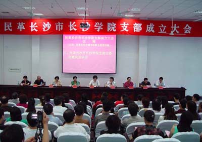 9月26日上午,在民革市委的领导和支持下、在学校党委的关怀和帮助下,民革长沙市长沙学院支部成立大会在科技楼学术报告厅隆重举行,从此结束了长沙市民革无大学支部的历史。民革湖南省委专职副主任肖芝泉、民革长沙市主委、长沙市副市长曹亚、长沙学院党委书记李咏芳、副书记、副院长李云龙、民革长沙市各支部主委以及长沙学院其他民主党派支部主委出席了成立大会。大会由民革长沙市委专职副主任贺绍佩主持,民革长沙市组织处处长焦长贵宣读了民革长沙市委同意成立长沙学院支部的批复,长沙学院民革支部主委赵敏介绍了支部的组织情况和今后的工作设想。